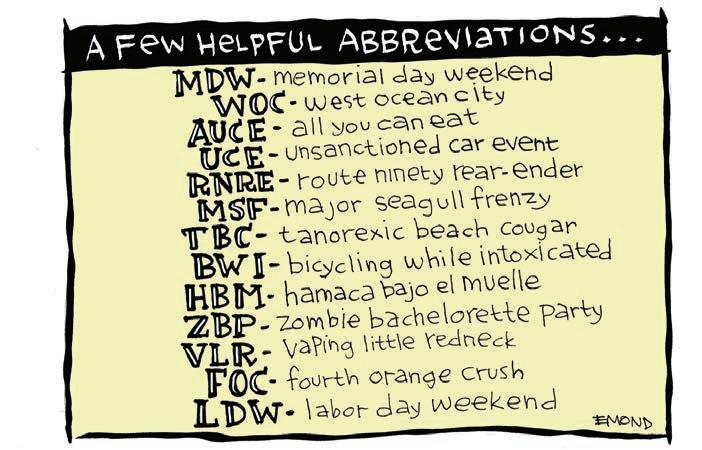 ACCOUNT MANAGERS Mary Cooper, Vicki Shrier, Amanda Shick CLASSIFIED MANAGER Nancy MacCubbin SENIOR DESIGNER Susan Parks GRAPHIC ARTIST Kelly Brown PUBLISHER Christine Brown ADMINISTRATIVE ASSISTANT Gini Tufts Ocean City Today is published weekly by FLAG Publications, Inc. 11934 Ocean Gateway, Suite 6, Ocean City, Md. 21842 • Phone: 410-723-6397 / Fax: 410-723-6511. Visit us on the Web at www.oceancitytoday.com. Ocean City Today is available by subscription at $150 a year. Ocean City Today Copyright 2022 MARK EMOND 2022