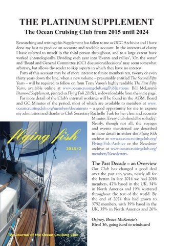 "The Worldwide Community for Adventure Sailing Since 1954" Ocean Cruising Club members represent the distilled essence of the blue water sailing community - a potent combination of accomplishment, experience, idealism, eccentricity, generosity and humility. The sole qualification for Full Membership, entails stepping aboard a boat and making a continuous ocean passage of at least 1000 nautical miles, measured by the shortest practical Great Circle route between two ports, in a vessel not more than 70 feet overall length. Associate Members join aspiring to do the same and being inspired by those who already have.