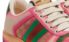 Inspiradas en la ropa deportiva vintage, las zapatillas Screener de Gucci hacen referencia a una década a la que esta casa recurre con frecuencia: los años 70. Fabricadas en Italia con piel, el diseño presenta la franja Web a ambos lados y se caracteriza por una serigrafía degradada aplicada a mano.