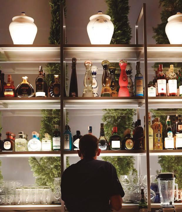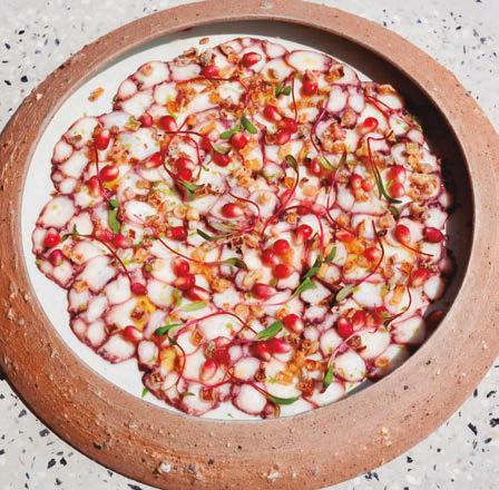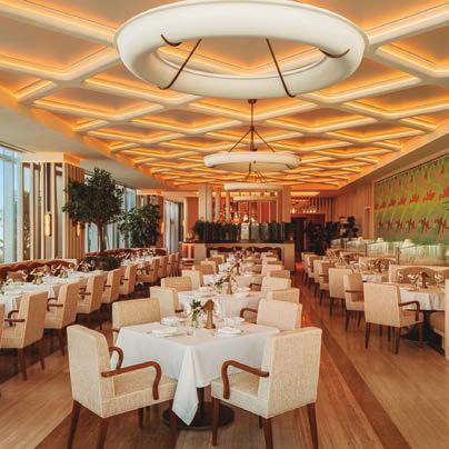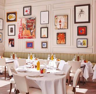 grupo de restaurantes de renombre mundial que ha obtenido 10 estrellas Michelin desde 2019, incluyendo L’Atelier de Joël Robuchon y Le Jardinier). Bajo la dirección de los chefs ejecutivos Salvatore Martone y Alessandro Morrone, ambos originarios del sur de Italia, el menú es de temporada, se centra en ingredientes de alta calidad y está profundamente arraigado en la tradición italiana. Destacan platos como el lenguado entero con escabeche de calabacín, los linguini alle vongole lupini y la focaccia rossa preparada en la mesa. Los interiores están presididos por una colección privada de arte de calidad museística e incluye obras de Andy Warhol, Damien Hirst, George Condo y Richard Prince.