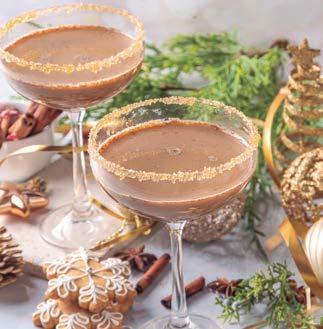 Agregar en una coctelera el ron, el Bailey’s, el jarabe de jengibre, la leche de almendras y la pizca de chocolate amargo. Añadir un puñado de hielo y agitar durante 5 o 10 segundos hasta que esté bien frío. Colocar en una copa de martini con el borde cubierto de galletas trituradas. Decorar con crema batida y espolvorear polvo de jengibre.