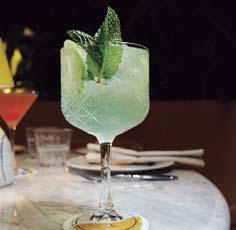 En un vaso, triturar el zumo de limón, el azúcar y las hojas de menta hasta que las hojas se deshagan. Llenar el vaso hasta la mitad con hielo. En una licuadora, combinar el ron blanco, la leche de coco y la leche condensada. Verter sobre el hielo y revolver para combinar. Cubrir con el agua con gas y decorar con hojas de menta y semillas de granada.