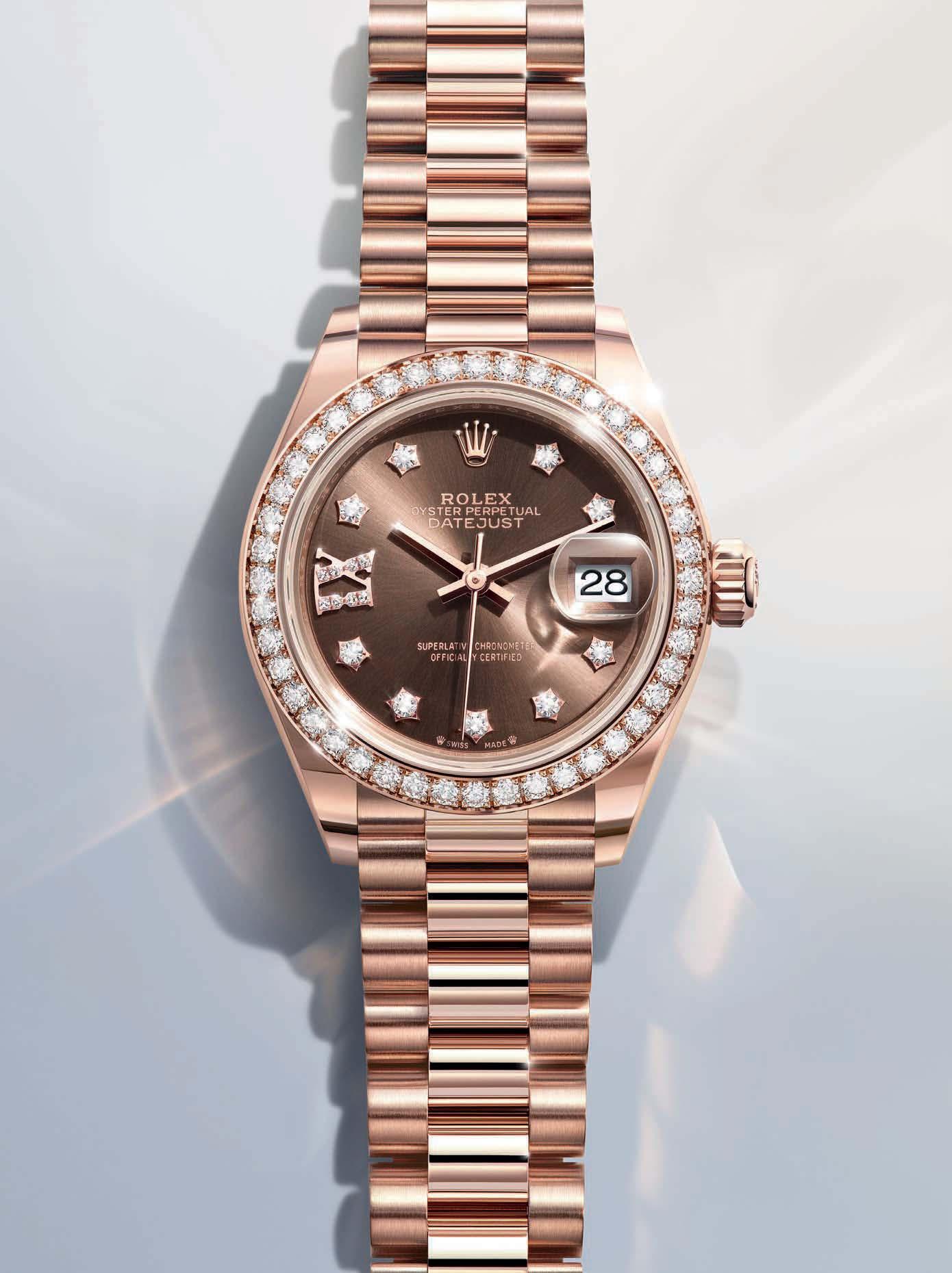 LONGINES El modelo Mini Dolcevita ofrece este espectacular tono rojo que es perfecto para la época decembrina. Es pequeño y refinado, así que será tu accesorio ideal para un toque de color en tus atuendos de fiesta. PIAGET El reloj Sixtie es la perfecta definición de elegancia atemporal. Su diseño vintage con caja en forma de trapecio le rinde tributo a una de la s eras más icónicas para esta marca (hasta Andy Warhol usó una de sus piezas en los años 60). CHOPARD La colección Happy Sport es el emblema de la creatividad y la audacia de esta firma. Sus piedras preciosas juguetonas que giran libremente han cautivado la imaginación desde 1993, cuando Chopard se convirtió en la primera Maison en combinar el acero y los diamantes. JAEGER-LECOULTRE En su caja de oro rosa, el ReversoTribute Monoface Or Deco posee un innegable encanto vintage. A ambos lados de la esfera dorada granulada, su brazalete luce una malla milanesa de oro q ue le confiere un estilo muy exclusivo. BULGARI Esta pieza de la colección Divas’ Dream es una sofisticada fusión de creatividad y maestría joyera. La esfera de mosaico está adornada con meticulosas piezas de oro e ngastadas a mano, dispuestas en el icónico motivo de abanico inspirado en la rica herencia cultural de Roma. OMEGA El SeamasterAqua Terra constituye un fabuloso homenaje al rico legado marítimo de esta casa relojera. Aunque cuenta con varios diseños, éste con esfera en tono burdeos es nuestro favorito.