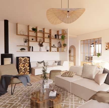01 Photoréaliste de la pièce de vie entièrement agencée