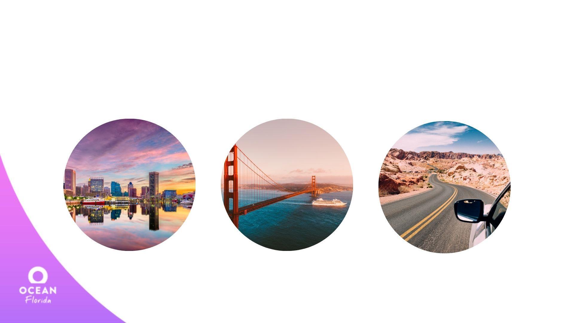 The entire state of Florida; not just Orlando California, including San Francisco, Anaheim, San Diego and Los Angeles USA Cities, including Boston, New York and Chicago Cruise and stay holidays