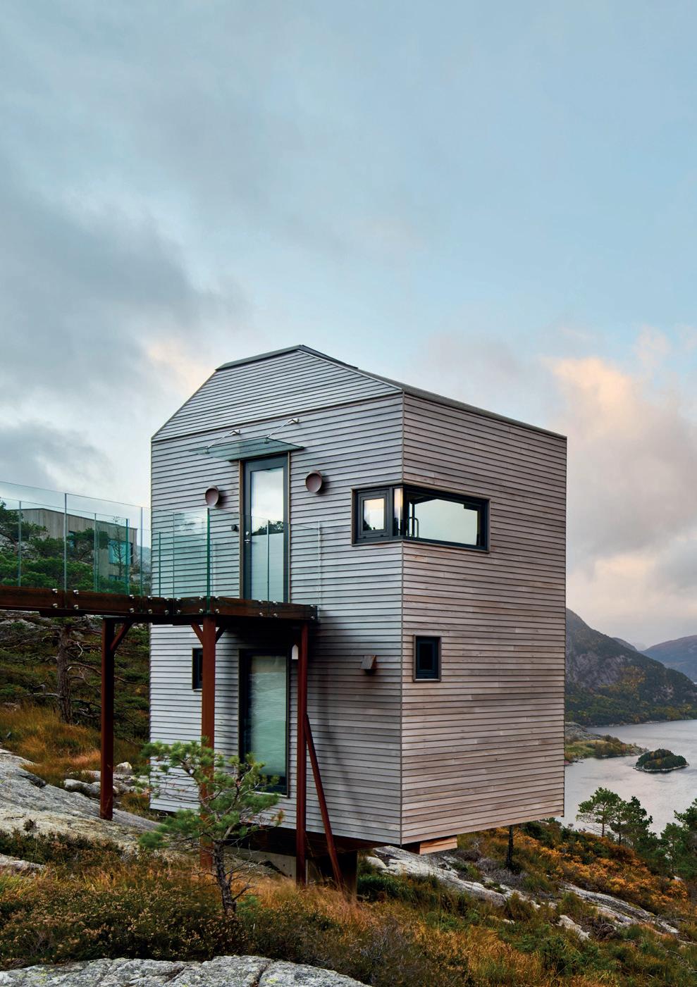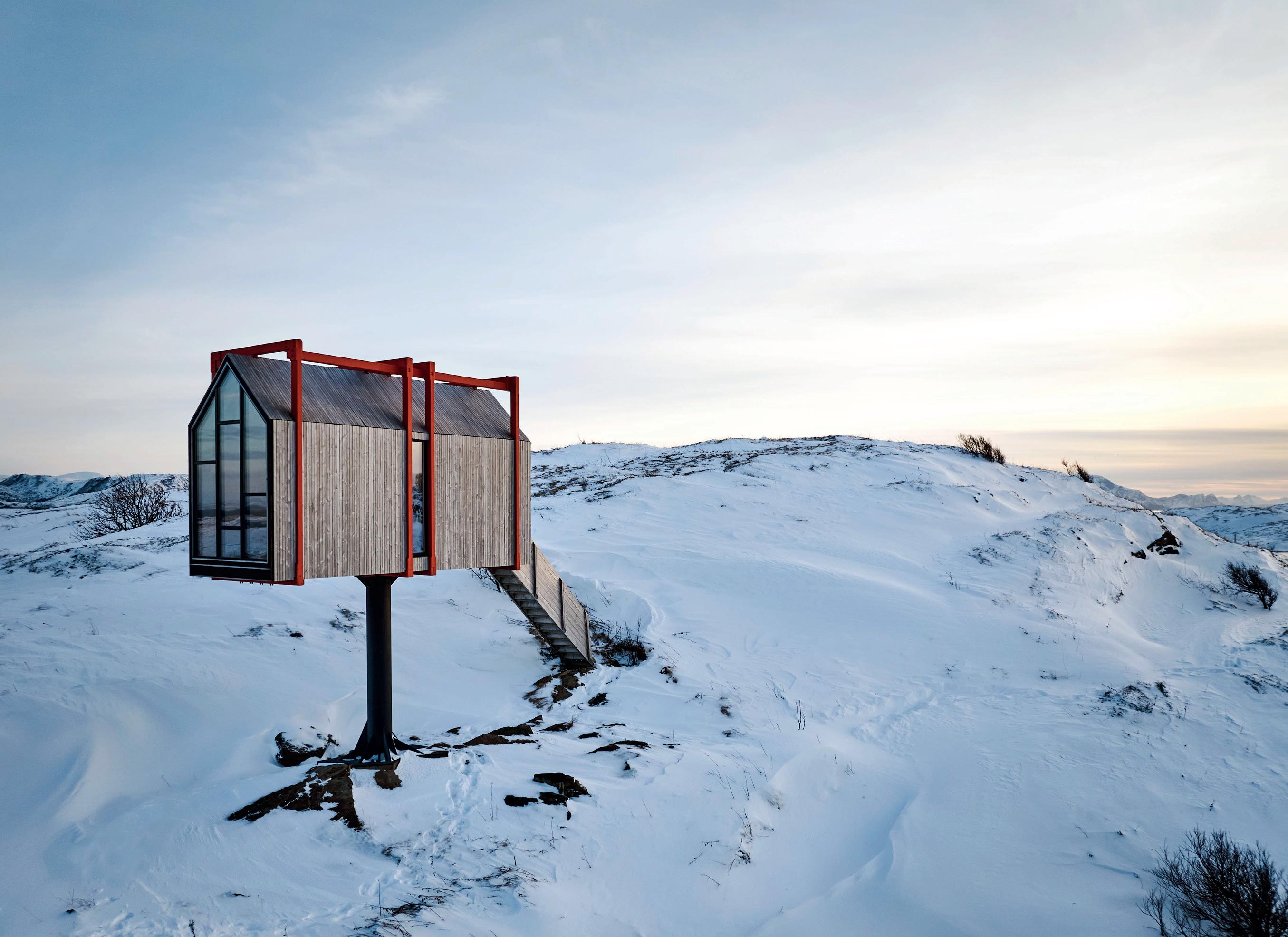 In Norway, PAN Tretopphytter (2018), a trio of A-frames on stilts by Espen Surnevik, immerses guests in the trees of a farm in Gjesåsen, while Snorre Stinessen’s timberlined Manshausen Tower Cabins (2023), built on a private island in the Steigen archipelago, feel gloriously isolated in the dramatic fjords.