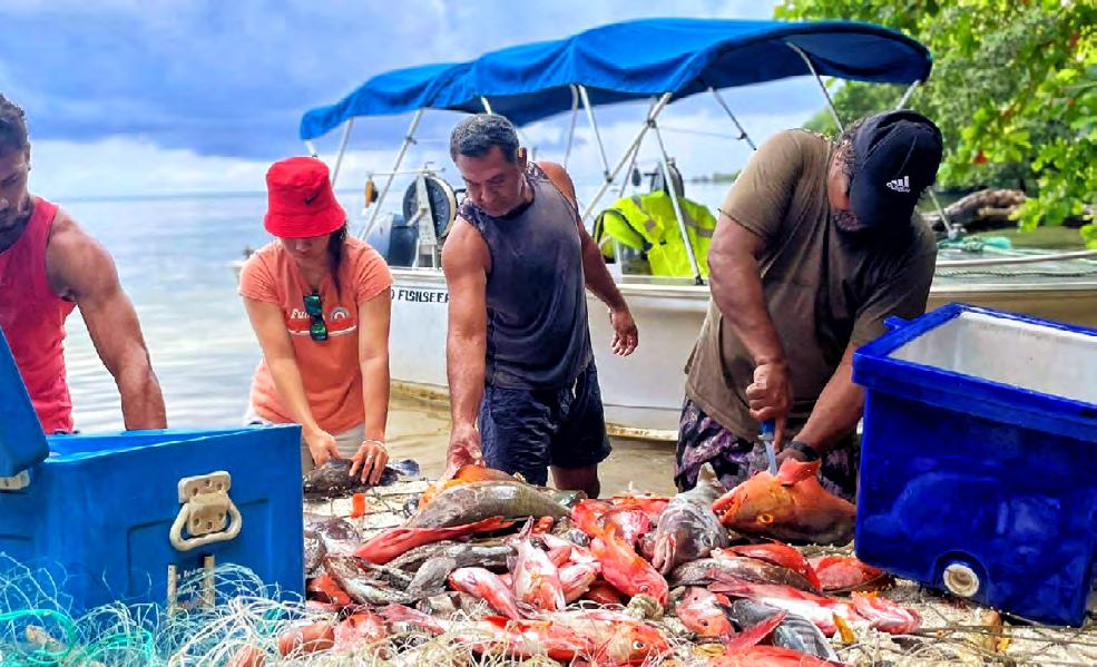 Pour ma part, je suis très souvent sur le terrain. Être une enfant du fenua présente l’avantage de faciliter la communication avec les pêcheurs et la population. J’organise régulièrement des réunions thématiques sur des sujets en lien avec l’activité de pêche et la gestion de nos ressources. Au quotidien, j’assure aussi la collecte des données, que ce soit à travers les fiches de pêche ou par les mesures au débarquement