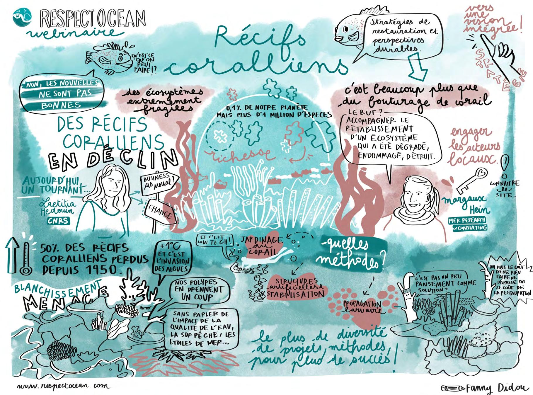 Créé à l’initiative de l’IFRECOR, le Réseau national d’Observation et d’aide à la gestion des Mangroves (ROM) a ainsi publié en 2020 le premier guide technique sur la restauration des mangroves, adapté aux outremer français. De son côté, l’association RespectOcean accompagne les acteurs économiques vers une meilleure préservation de l’océan et organise, en 2024, un cycle de webinaires portant sur la restauration corallienne en partenariat avec l’IFRECOR.