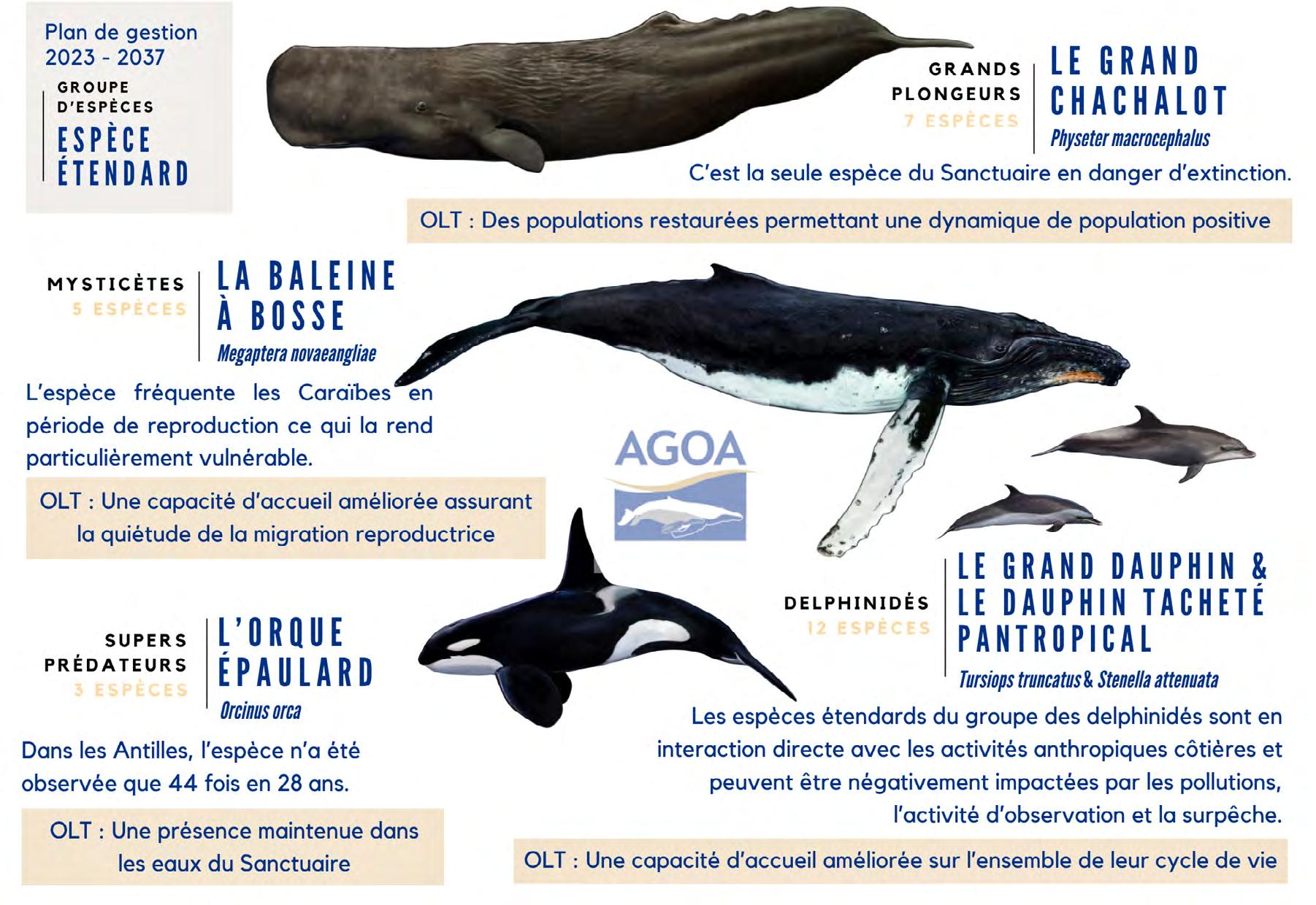 Le Sanctuaire Agoa, c’est 143 256 km ² d’espace maritime dédié à la préservation des mammifères marins de Martinique, Guadeloupe, Saint-Martin et Saint-Barthélemy. Dans ces eaux évoluent 22 espèces de cétacés, soit 30 % de la diversité mondiale. Des animaux malheureusement confrontés à de nombreuses menaces : contaminations, dérangements, collisions, pêches... Sous l’impulsion du Sanctuaire, des défis de taille sont à relever et doivent mobiliser l’ensemble des acteurs caribéens.