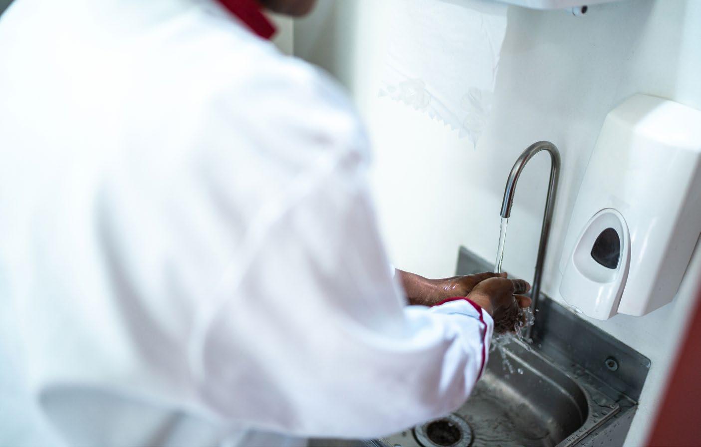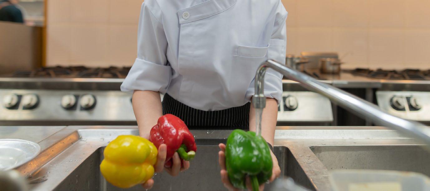 • Hot and cold running water must be available. Hot water at hand sinks shall be at least 100°F, not exceeding 108°F, if the faucet’s water temperature is not easily adjustable. All other sinks must be at least 120°F.