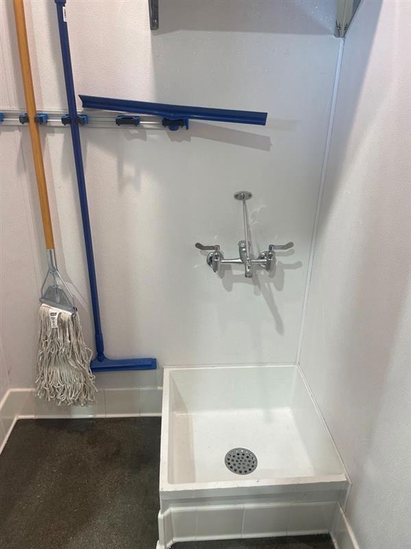 At least 6’ high partition extending to the edge of the janitorial sink as measured above finished floors.