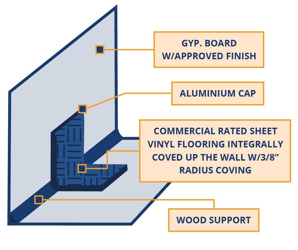 Finish schedules completed by area. The schedule shall include the proposed floors, walls, ceiling, and coved base finishes in all areas other than the customer waiting and dining areas.
