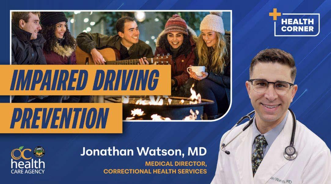Dr. Jonathan Watson, Medical Director, Correctional Health Services takes a moment from his work inside the OC jail to focus on safe driving during this National Impaired Driving Prevention Month. Watch the video message by clicking here