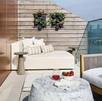 outdoor corner. Instead of scattering pots randomly, consider grouping them in varying heights to create visual interest. Terracotta planters filled with lavender, rosemary, or small olive trees offer a Mediterranean charm, while trailing plants such as ivy or jasmine soften walls and railings. Even a single well-chosen plant can become the focal point of a small space. Lighting is often overlooked, yet it can completely transform the mood of an outdoor corner. As daylight fades, soft lighting allows the space to remain inviting. Lanterns, solar lights, or a few delicate strings of warm fairy lights create an atmosphere that feels intimate and relaxed. Candlelight, when used safely, adds an unmistakable sense of tranquillity. Finally, remember that simplicity is key. A successful outdoor retreat should never feel cluttered. A small table for a drink, a comfortable seat, a few beautiful plants, and gentle lighting are often all that is needed. The aim is not to fill the space but to shape it thoughtfully. In the end, the beauty of an outdoor corner lies in its intimacy. It becomes a small personal escape within the home, a place where the pace slows and the pleasures of spring can be fully appreciated. With just a little attention and imagination, even the smallest outdoor space can become a stylish sanctuary under the open sky.