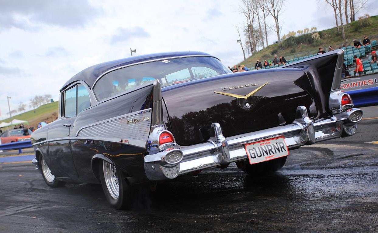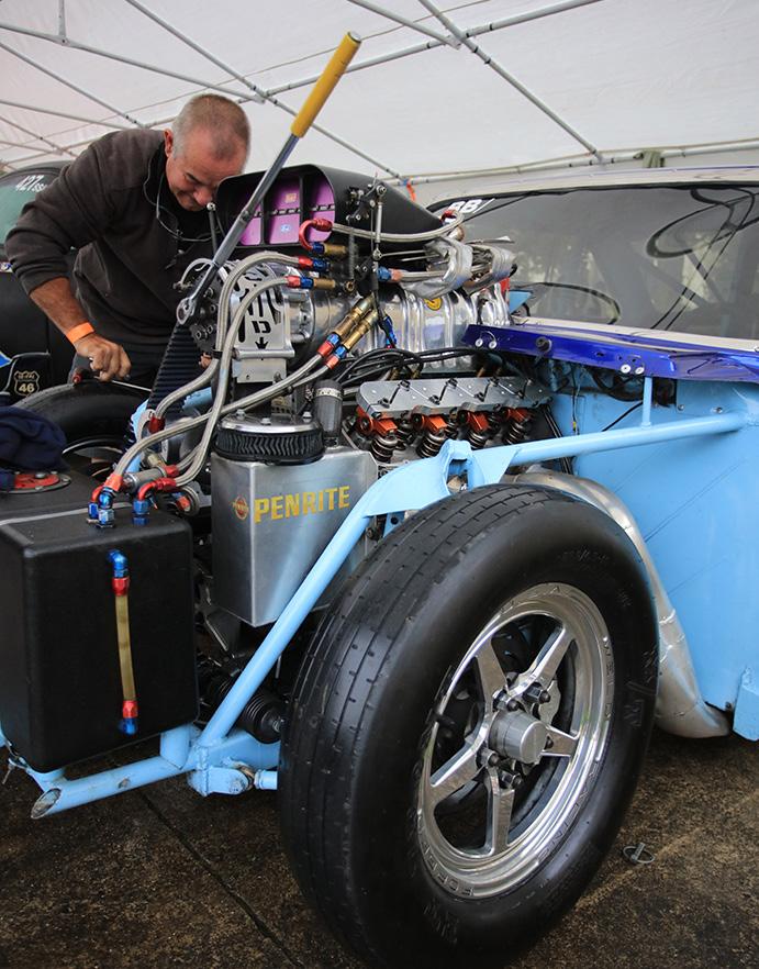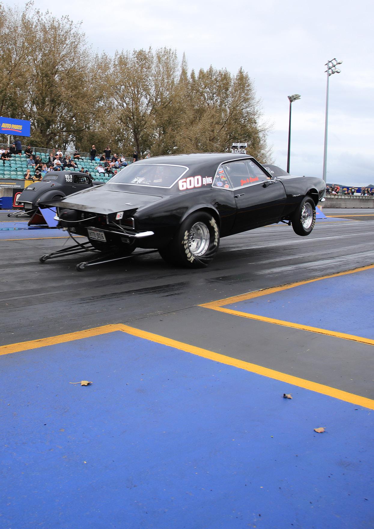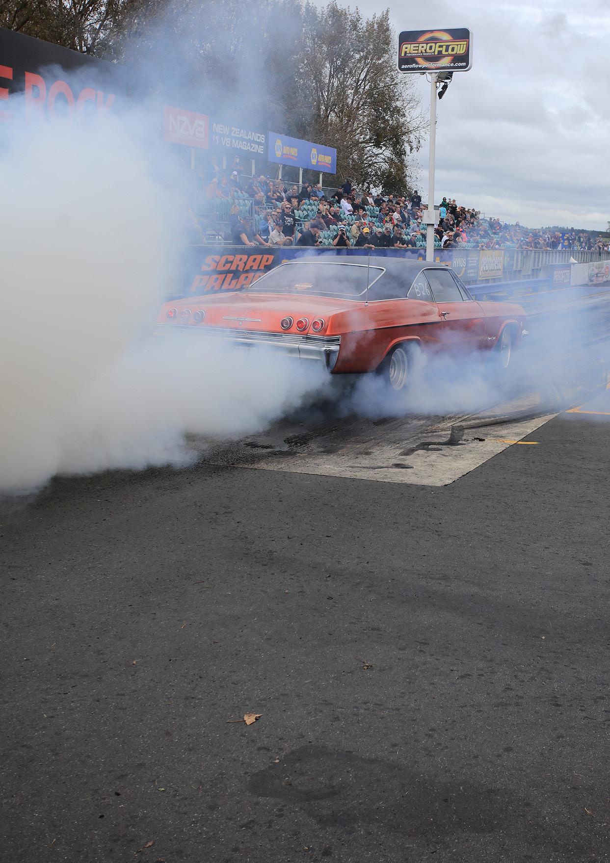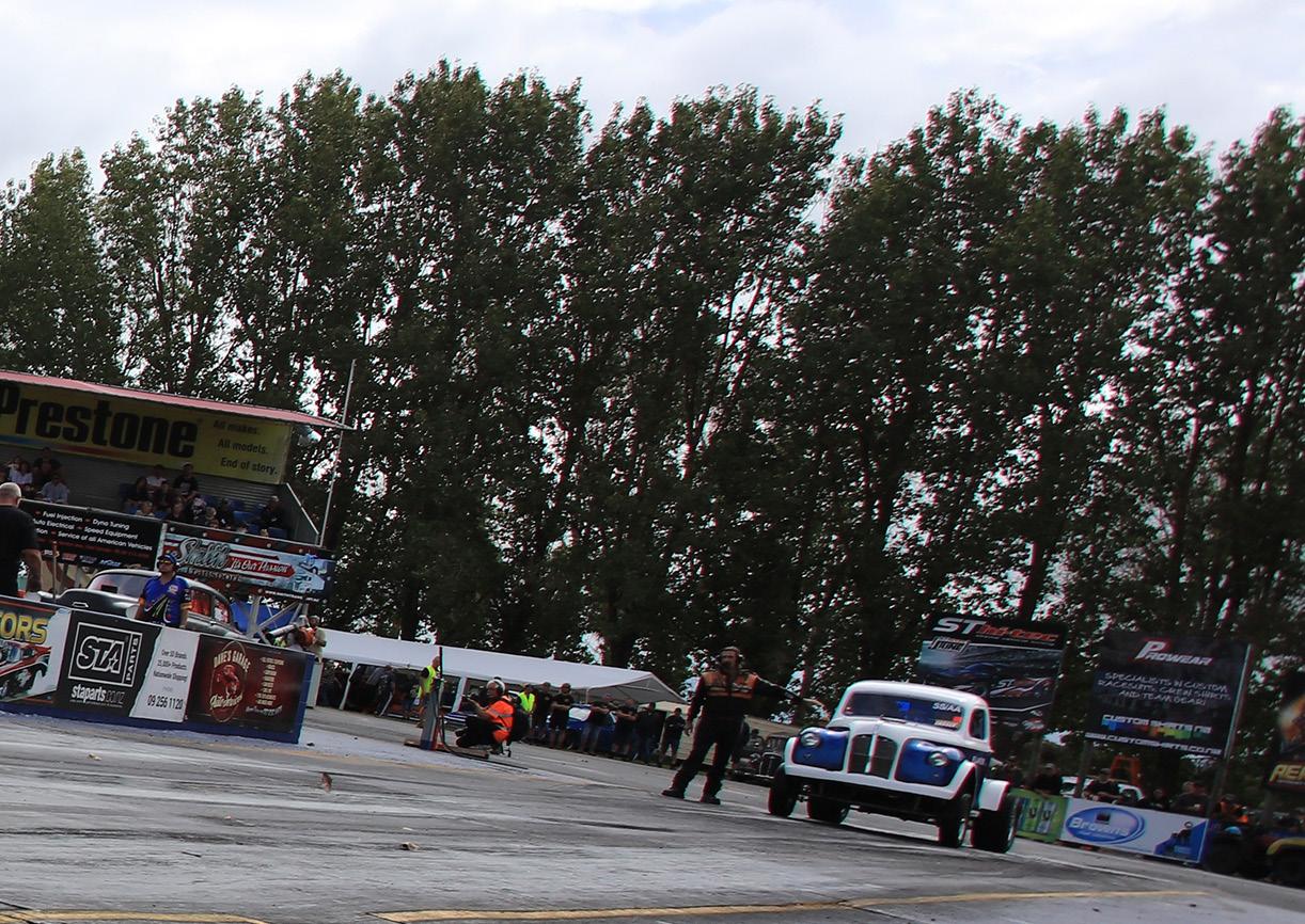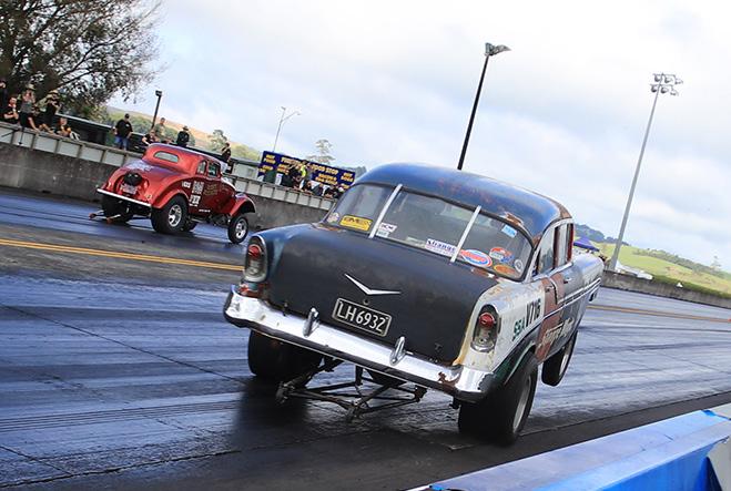 Russell Low with his 56 Chevy and Glenn Munro were putting on an awesome display for the crowd with their races. Russell fully launching the fifty-six’s front wheels in the air as he does.