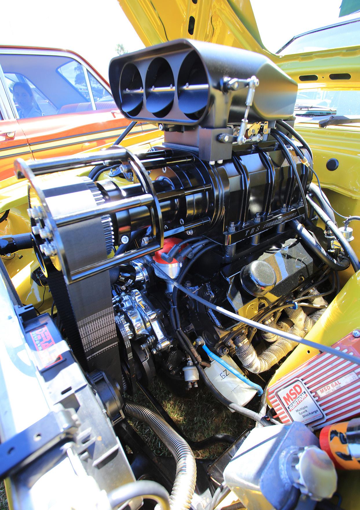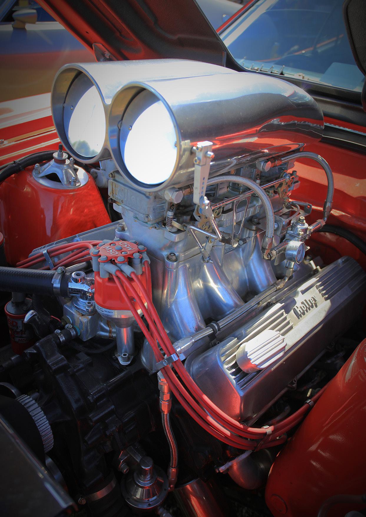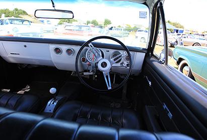 I’m not sure if this one still classes itself as economical now though. When I jumped in for a ride with Graeme, the first thing I noticed was the floor shift four speed gear lever poking up from the floor. Then when Graeme flicked the key, it was very apparent that things had been altered a tad under that long hood up front as well.