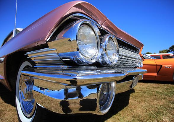 The polished headlight surrounds incasing the twin headlights above the big chrome bumper wrapping the front fenders together while splitting the grill, adding to the class of these gorgeous big rides.