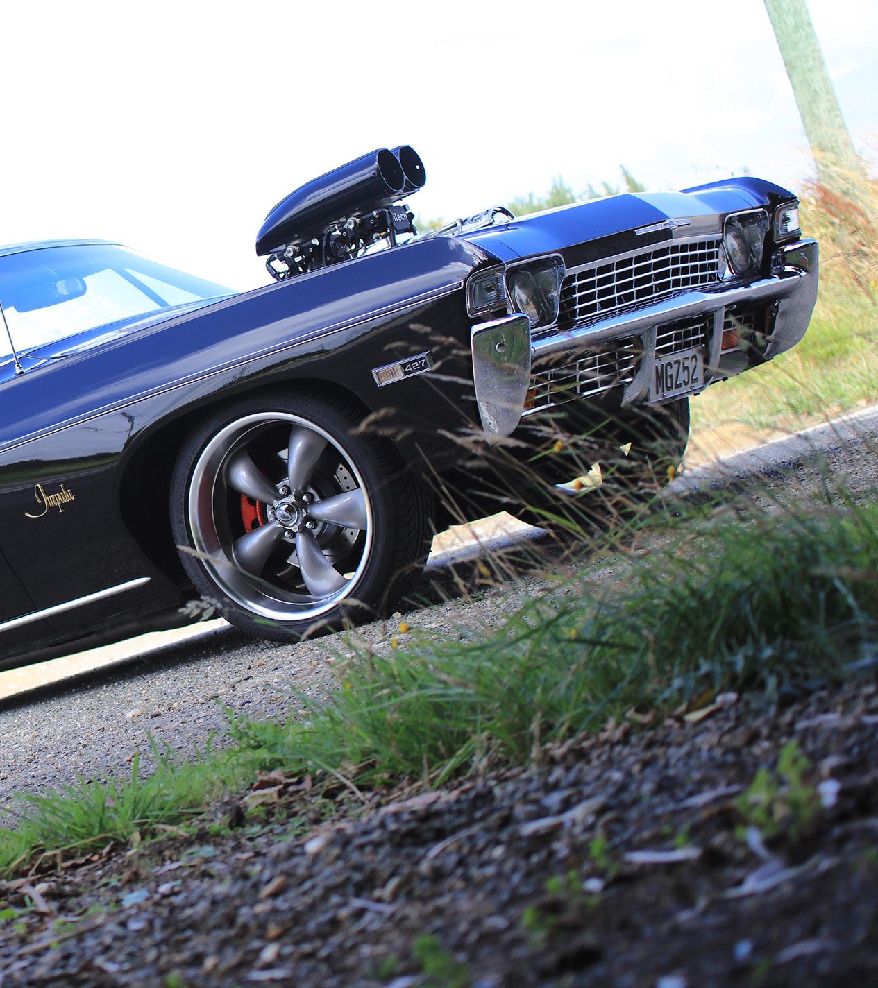Graham & Francis have only enhanced Chevrolets dream here. The gold finish on the Chevrolet and Impala badges adds to the class. The polished five spoke, deep dish wheels bearing them wide tyres taking the stance to the next level of coolness with the rear dropped to the tarmac.