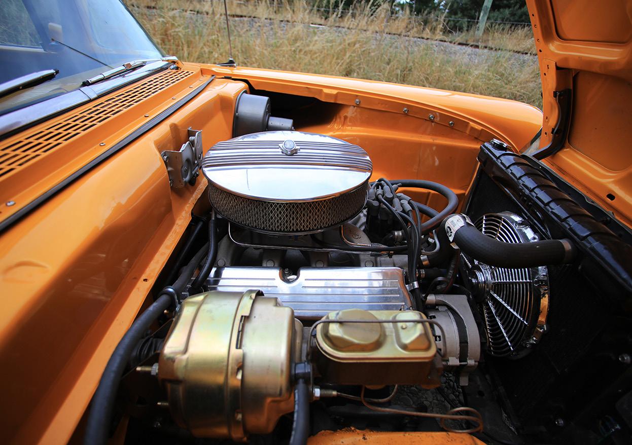 The body being straight and clean of the rust problems often encountered, made life a lot easier for the finish to capture the gloss and reflection of the modern Tangerine Scream paint that simply glows in the sunshine.