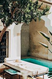 A Riad al Massarah építési ideje ismeretlen, de annyit tudunk, hogy egy gazdag kereskedőcsaládé lehetett, amit a két udvaros – egy nyilvános és egy privát – elrendezés is alátámaszt. A házat 2005-ben vette meg egy nyugat-európai pár, hogy elegáns, minimalista stílusban felújítva riadként üzemeltesse. A minimalista errefelé egész mást jelent, mint nálunk. Leginkább azt, hogy a helyi dekorációs hagyományokból ízlésesen és szűkszavúan válogatva alakították ki a belső teret. Ízléses kis medence, felette masribíjja („apácarácsos” alkóv, amin eredetileg arra szolgált, hogy a nők kiláthassanak az utcára anélkül, hogy maguk látszódnának), puritán fehér falak és délszaki dísznövények. A Covid csapásait azonban rosszul viselték és a riadot eladták Gauder Milánnak, aki pár évvel ezelőttig a Mastercard globális alelnöke volt, mielőtt a multis világot otthagyva kulturális projekteknek (lásd: Átrium Színház) civil szervezetkenek és startupok felfuttatásának szentelte volna a napjait.