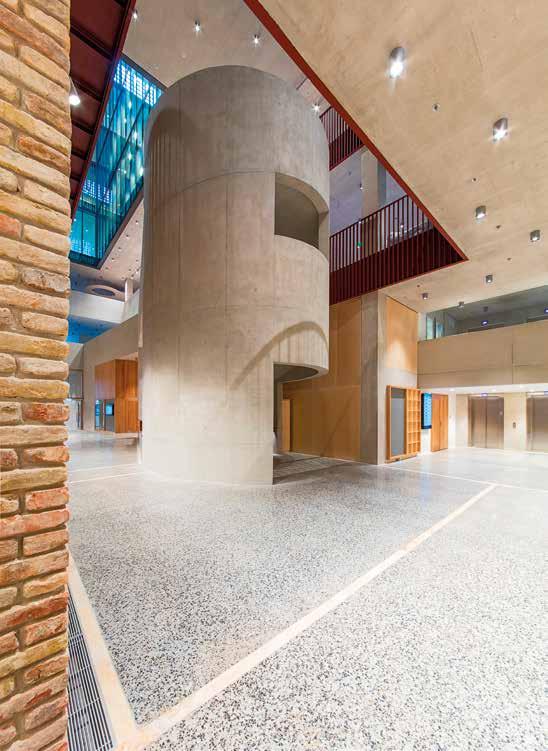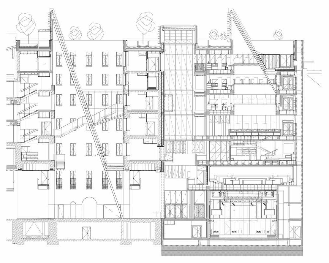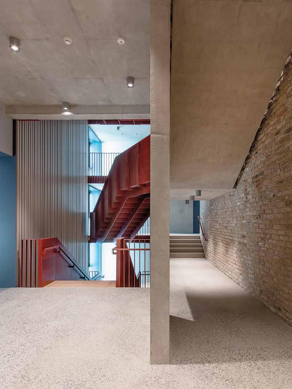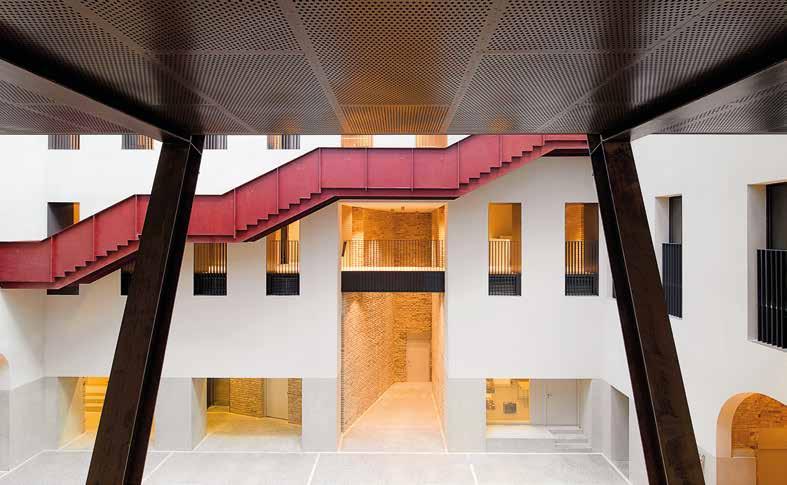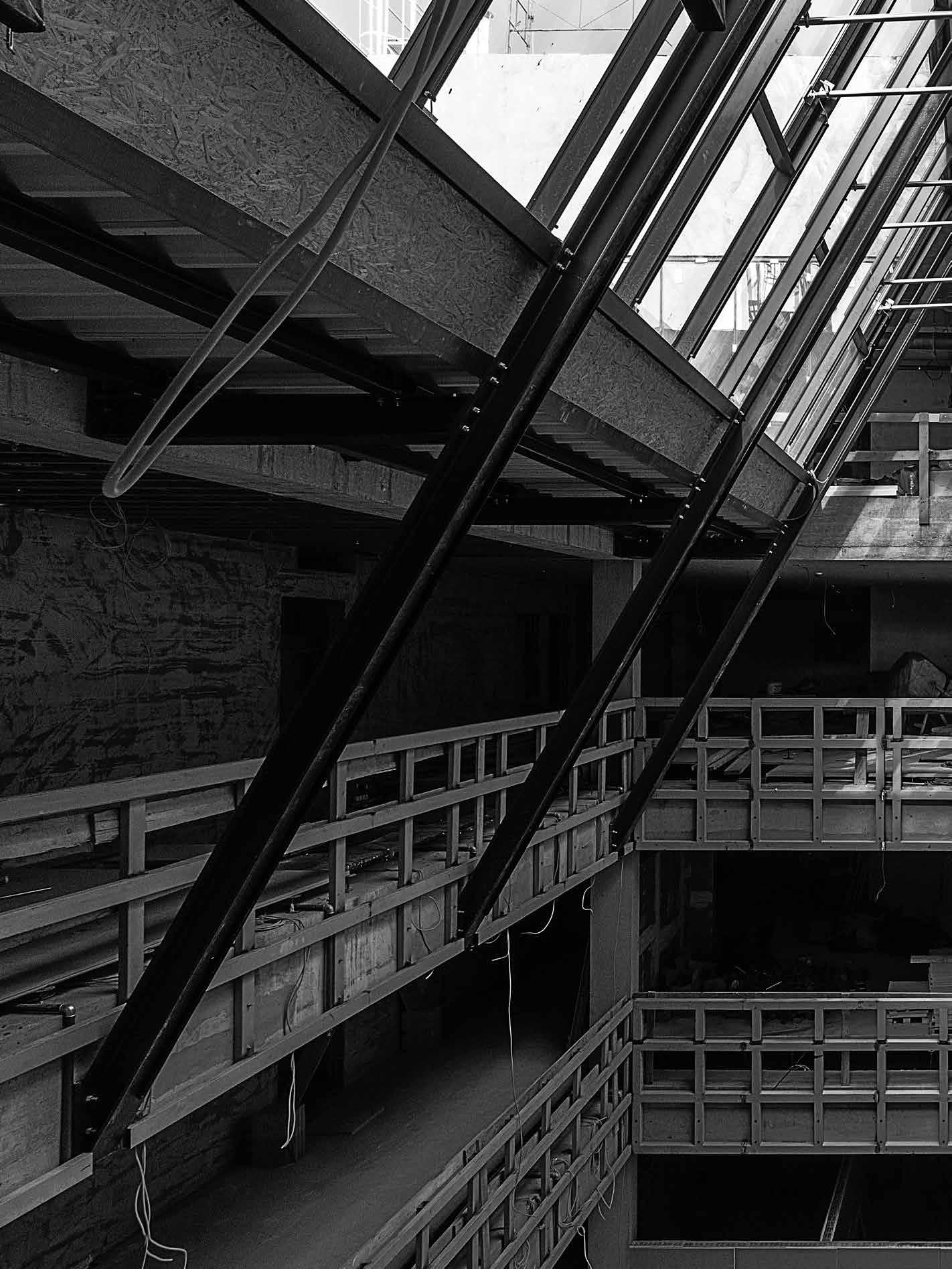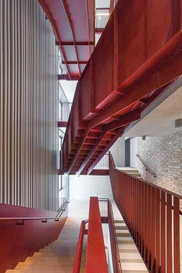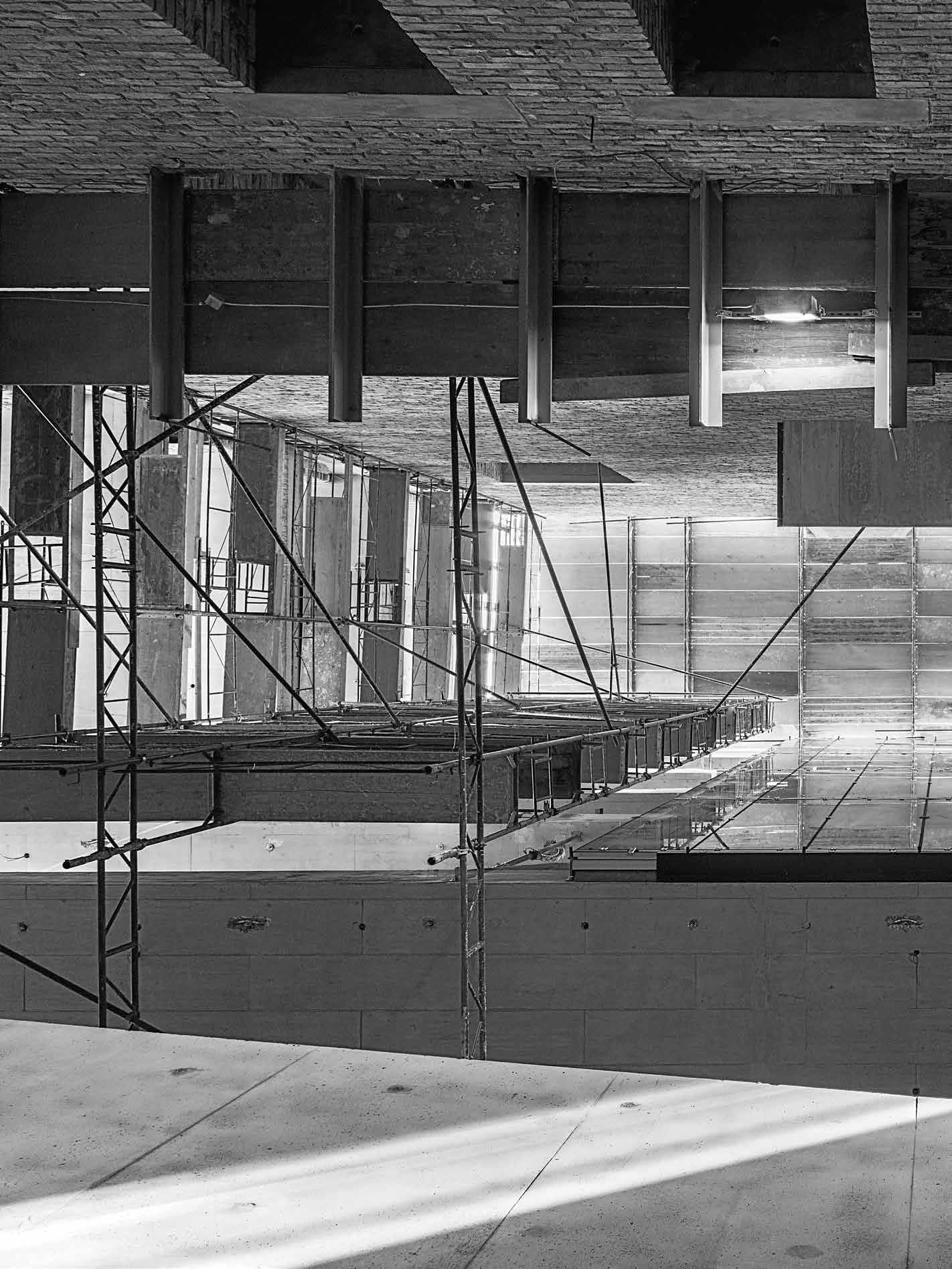 Úgy alakult, hogy az építkezés különféle fázisaiban szerkesztőségünk szinte minden munkatársa járt az CEU campus új Nádor utcai új épületében. Kézenfekvő volna megmerítkezni mindenben, amiből oldalak, szövegek, képek születnek, ugyanakkor ritka kegyelmi állapot, amikor a napi munkából kiszakít az élmény. Kollektív tudásunk, tapasztalatunk lett szép lassan egy épületről, amiben külön-külön, de órákat töltöttünk el. Hol poros, koszos munkálatok közben, hol a tervezőket hallgatva bolyonghattunk útvesztőnek tűnő bejárásokon, építőanyaghalmok, építőgépek között az épületben. Az építés utolsó hónapjai voltak ezek. Feltűnően, korábbi tapasztalatainkat felülíró módon sok építőmunkás serénykedett az épületen. Hatalmas tömegnek tűnt szűk helyen, miközben még teherliftek, állványerdők szőtték át az épület belső tereit. Valami különös életerő lüktetései voltak ezek. Ritkán lehet megtapasztalni a születést ebben az érzéki formában az építészet kapcsán. Nekünk, kívülállóknak, akik nem érintkeztünk a kivitelezés, szervezés, lebonyolítás napi küzdelmeivel, apró győzelmeivel és kudarcaival, ez a megszületés előtti állapot leginkább egyfajta energiaként, sodró lendületű áradásként volt megtapasztalható. Élményeink, látogatásaink után ebből az energiából vittünk a szerkesztőségbe magunkkal valamit, amivel képesek voltunk a többiek érdeklődését is felkelteni azzal kapcsolatban, hogy valami rendkívüli formálódik az épület utcai kőhomlokzata mögött. Valószínűleg a CEU campus tervezőinek alkotói módszere kapcsán elhangzott „kézműves” foga-