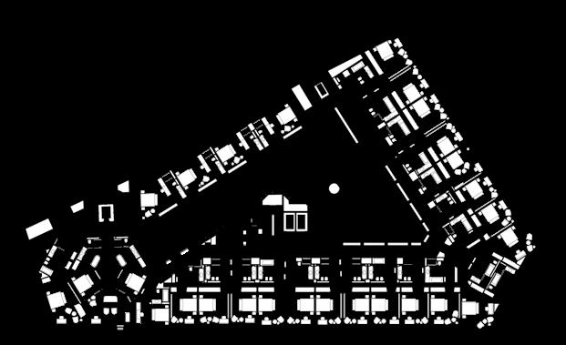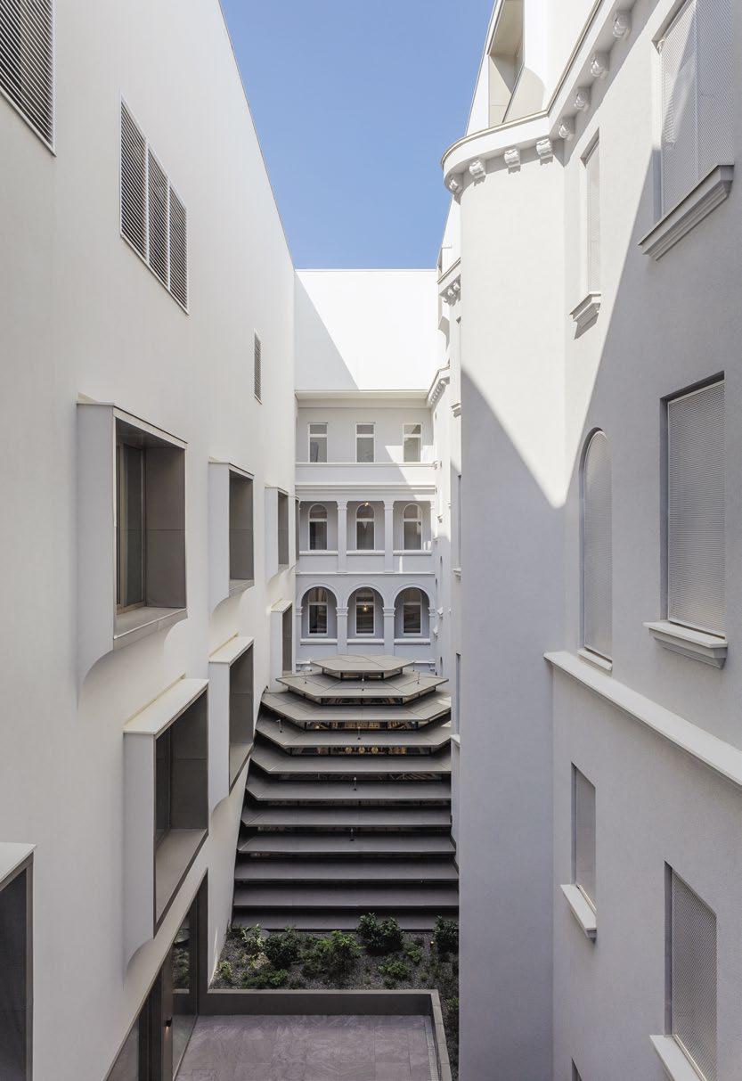 Az úgynevezett poligon-udvar lefedésével az első emeleten kialakult egy nagy belmagasságú lounge tér. Ezt a teret árkádok veszik körül, amelyekből szállodai szobák nyílnak.