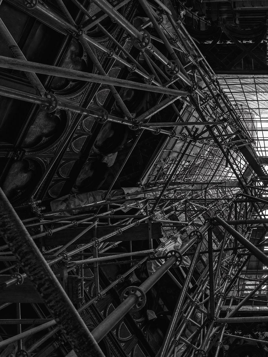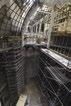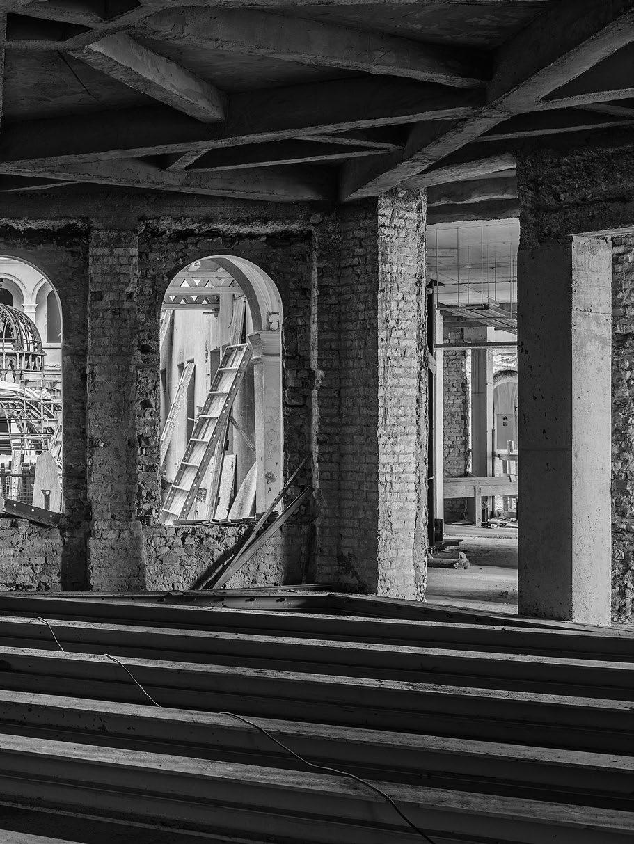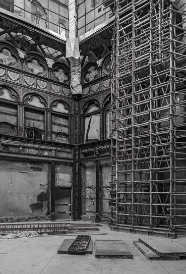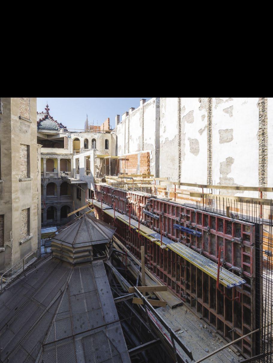 Műemlékvédelmi szempontból hogyan indult a munkafolyamat? Egy ilyen épület kivitelezése kétféleképpen indulhat el: az egyik lehetőség egy jelentős mértékű bontás, amely feltárja, hogy valójában milyen szerkezetekkel és problémákkal állunk szemben. A Párisi Udvar esetében a másik lehetséges stratégia valósult meg: átvettük a munkaterületet, és a kivitelezés gyakorlatilag a bontásokkal párhuzamosan kezdődött el. Ennek a módszernek az az előnye, hogy már a folyamat elején meg lehetett ismerkedni a szerkezetekkel és az előttünk álló problémákkal. Említhetném például a tetőn lévő felépítmények helyzetét, amelyeket fiatornyok határoltak, díszítettek. Ezek olyan állapotban voltak, hogy csekély, akár 50-60 kilogrammos ráhatással ki lehetett mozdítani őket a helyükről. Sok olyan esettel is találkoztunk, amikor egy-egy részlet állapota nem volt elégségesen felmérve. Korábban azt terveztük, hogy a meglévő födémek egyharmadát kell majd felújítani, megerősíteni, ez az arány megfordult – mindez menet közben derült ki. Ennek következtében felborult az egymásra épülő kivitelezési menetrend, vagy képtelenség volt tartani az előre eltervezett szakmai partnerek felvonulásának sorrendjét.