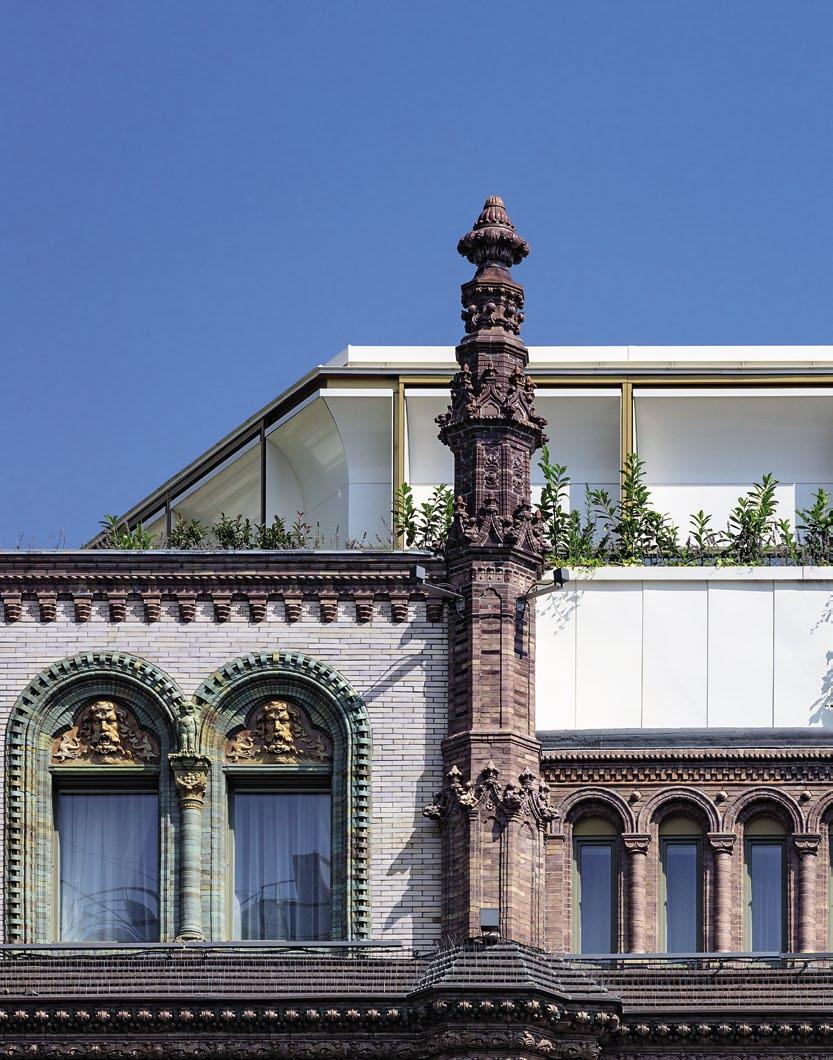 mindenképpen Európa tíz legszebb épületének egyike. Magyarországon pedig a második legszebb –a Parlament után. Hadd legyünk tehát büszkék arra, hogy mi fejlesztettük az ország második legszebb épületét. De nem csak szépségében, részleteiben gazdag, hanem a mai kialakításában is. A 6. emeleten 2 rezidencia található, ezek területe 133 m 2 és 291 m 2 . Igény szerint a két rezidencia összenyitható, így a 2 lakosztály összesen 424 m 2 alapterületű lesz öt hálószobával, két nappalival, két étkezővel, konyhával, szaunával, gőzkabinnal, infraszaunával, jacuzzival, és a mintegy 300 négyzetméteres teraszon napozóágyakkal, étkezővel. A két rezidencián kívül az épületben még 16 lakosztályt helyeztünk el. Valamennyi egyedi kialakítású: van köztük két hálószobás vagy akár konyhával, esetleg külön tárgyalóval ellátott lakosztály. 45 és 100 m 2 közötti méretűek, berendezésük a többi szoba alapjául is szolgált. Rendkívül nagy gondot fordítottunk arra, hogy a műemléki felújítások a legmagasabb minőségben valósuljanak meg. Már az elején úgy döntöttünk, hogy a házat az eredeti tervek szerint szeretnénk felújítani. Persze sok küzdelemmel járt, nagyon sok probléma merült fel, de bíztunk benne, hogy sikerrel járunk. Szerintem semmi túlzás nincs abban, ha azt mondom, ma már egész Budapest örül annak, hogy sikerült újjávarázsolnunk ezt a pazar remekművet.