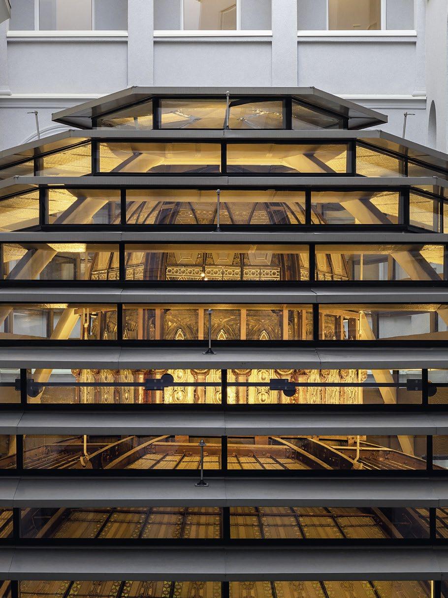A belső udvarban új, ötszintes, szállodai szobáknak, konferenciatermeknek és gépészeti helyiségnek helyet adó épületszárny épült.