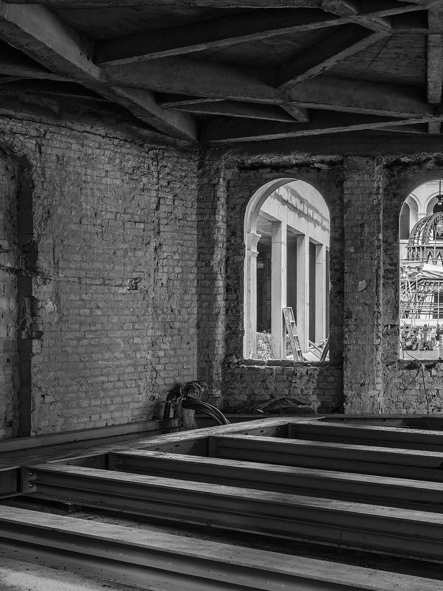 összeállítható részeket. Jelenleg a poligon-udvar az egyik kedvencem, ahol 2019 januárjában még ott állt egy toronydaru, beázott az a rész, és nehéz volt elképzelni, hogy határidőre ez a terület is összeáll. A gyönyörű központi kupola két éven át volt beállványozva, és nagyon lassan lehetett haladni vele a műemlékes munkák miatt. Most, „kicsomagolva” az épületet, egyben látva a végeredményt, már ki tudom mondani, hogy megérte.