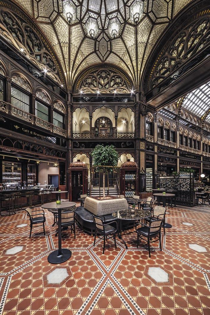 sameer hamdan: Ezért határoztunk egy hétköznapibb üzletmix kialakításáról: nyílik telefonszaküzlet, játékbolt, fehérnemű-szaküzlet, optikus és dohánybolt is. Sokak szerint a ház mívessége és az üzletek kontrasztban állnak egymással, de szerintünk épp így működhet jól az épület városi térként is. A vendéglátást nem szerettünk volna kitelepíteni az utcára, hiszen a kávéház és az étterem a legszebb belső részeket kapta meg a passzázsban.