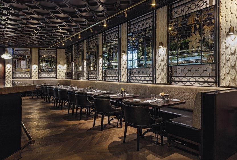 „Az úgynevezett F&B (food and beverage) területre a Hyatt javasolt egy specialista tervezőt, Henry Chebaane-t, a Blue Sky Hospitality tulajdonosát. Ő az étterem és a közvetlenül hozzá tartozó területek esetében nemcsak a működéshez adott tanácsokat, hanem belsőépítészetileg meg is tervezte ezeket a területeket: nagyon profi koncepciót dolgozott ki. A régi takarékbanki méh-motívumból kiindulva határozta meg a színeket, anyagokat, és a méhsejt hatszög formái itt is több helyen megjelennek. Ez a méz–méh-téma a látványon túl további mélyebb szimbolikát is hordoz a dolgok esszenciájáról. A közösségi teret egy építészeti elemekbe csomagolt emberi méhkaptárként képzeli.” göde andrás belsőépítész