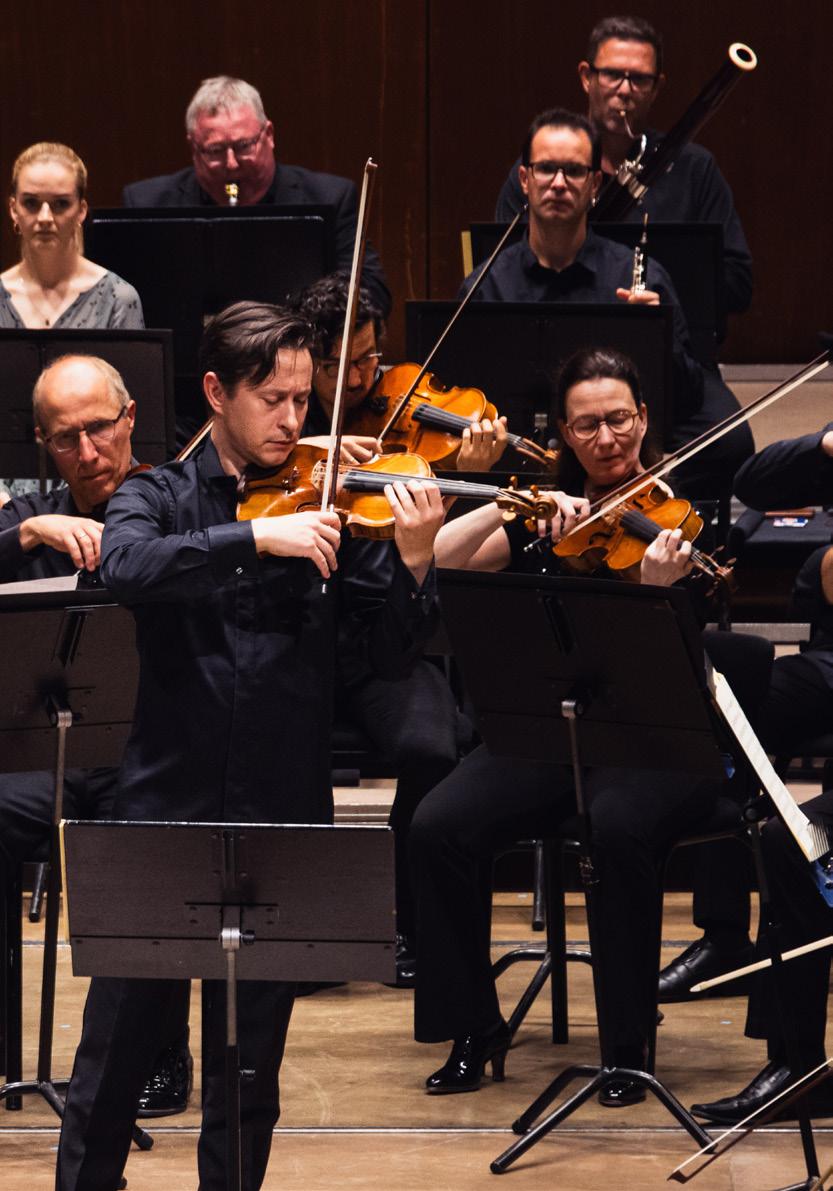 Eugen Tichindeleanu, violin Koncertmester i Odense Symfoniorkester siden juni 2013. Eugen Tichindeleanu er født ind i en rumænsk musikerfamilie og debuterede som bare 8-årig med Bacau Symphony Orchestra. Han er uddannet på Musikakademiet i Bukarest, hvor han studerede hos Stefan Gheorghiu. I 2003 flyttede han til Paris, hvor han studerede på konservatoriet hos Gerard Poulet og Olivier Charlier. Han har også fulgt undervisning hos Mauricio Fuks, Pavel Vernikov og hos sin mentor Dmitry Sitkovestky. Eugen har vundet adskillelige priser og optrådt med en lang række orkestre over det meste af Europa. Siden 2020 har han ved siden af sit arbejde i Odense også indtaget koncertmesterposten ved City of Birmingham Symphony Orchestra. Eugen har ved flere lejligheder dirigeret OS og stået i front for orkestret som solist.