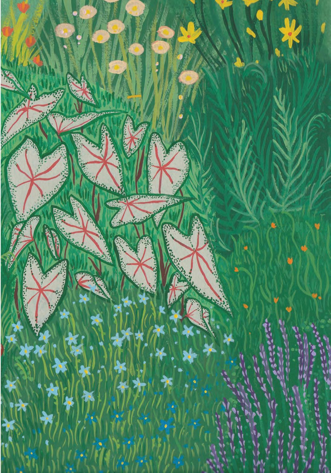 This year’s iliad theme, “Flourish,” conveys the growth of plant life as a metaphor for the creative process. We have divided the magazine and its content into three subsections, “Revive,” “Grow,” and “Thrive,” and each piece is sorted into one of these three sections. “Flourish” mirrors the creative process with “Revive” representing an initial creative idea, “Grow” representing the development of this idea, and “Thrive” representing the completion of a creative endeavor and the effect it has on an individual’s creative identity.