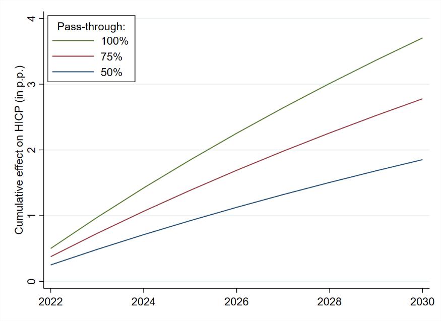 • By 2030: Cumulative increase of consumer prices between 1.8 to 3.7 pp, depending on pass -through.