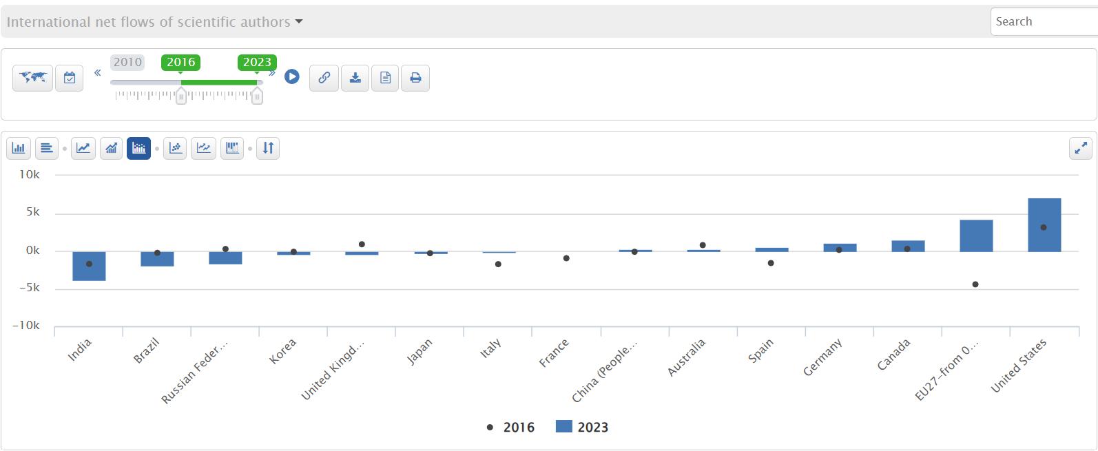 • The STI.Scoreboard platform can be used to retrieve, visualise and compare statistical indicators of science, technology and innovation systems across OECD countries and several other economies. Use the platform to generate your own charts, download data and charts or save and share them.