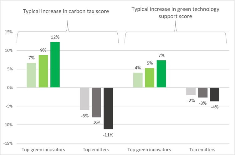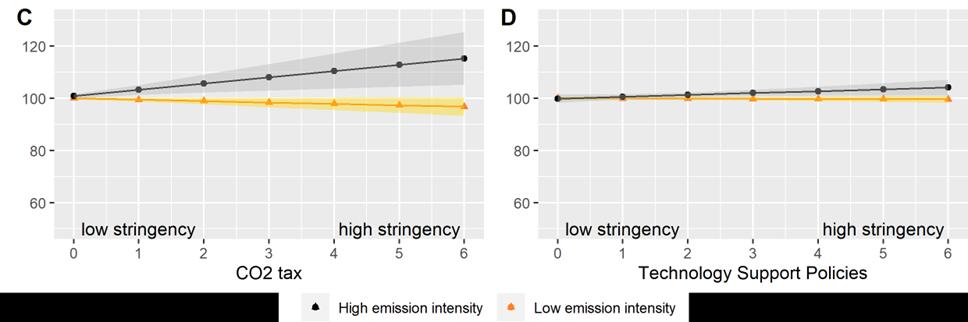 Results suggest large effects of climate policies on investments among green innovators and high emitters