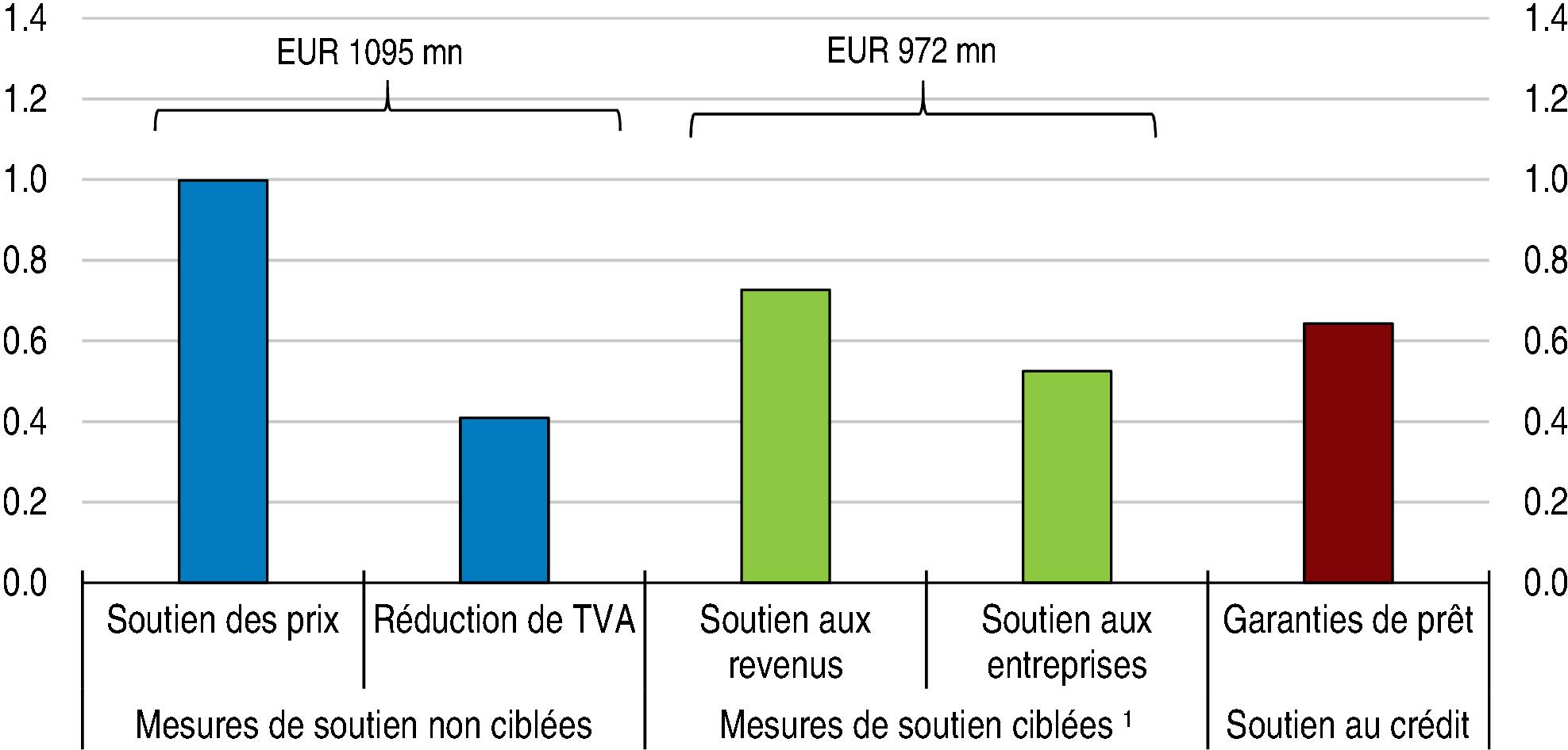 1 Des mesures ciblées s'adressent aux ménages ou aux entreprises, sur la base de critères tels que les niveaux de revenu ou de consommation d'énergie. 2. Le PIB de 2022 est basé sur une prévision de l'OCDE.