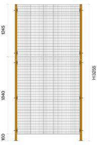 Produkt je navržen jako samonosný panel s drátěným pletivem, která zlepšuje výhled na oddělené stroje.
