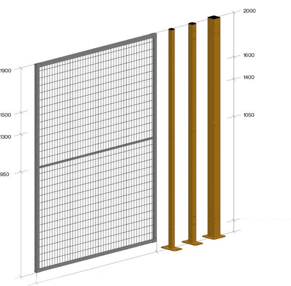 Produkt je navržen jako samonosný panel s drátěným pletivem, která zlepšuje výhled na oddělené stroje.