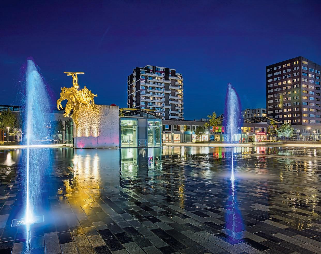 Opvallend is de Cascade, het langste waterkunstwerk van Europa. Een eerbetoon aan het water dat ooit de levensader van Hoogeveen was, gemaakt door kunstenares Karin Daan. Het is 250 meter lang en ligt op de plaats van een gedempt kanaal, midden in de Hoofdstraat. Het water kronkelt er langzaam tussen alle winkels door. Enorm gezellig en een echte publiekstrekker! Maak tijdens het shoppen een stop bij het (verlichte) waterkunstwerk met fonteinen aan het Kerkplein. Bij mooi weer een heerlijke plek voor de kinderen om even te spelen. Kerkplein