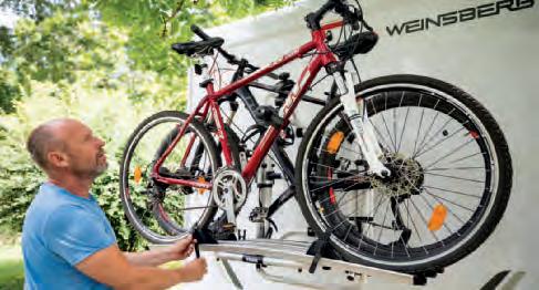 Mobil sein am Campingplatz bedeutet für viele auch die Mitnahme von Fahrrädern am Wohnmobil oder am Wohnwagengespann. Dies bedeutet, dass sehr genau darauf geachtet werden muss, welches Gewicht transportiert wird und auch, wie und wo der Träger montiert wird. Es gibt sogenannte Heckfahrradträger, welche bei einem Fahrzeug zum Beispiel auf die Heckklappe oder beim Wohnmobil auf die Heckwand montiert werden. Sogenannte Kupplungsträger werden direkt auf die Anhängekupplung aufgesetzt. Weiters gibt es noch jene, die auf der Anhängerdeichsel montiert werden. Die Montage von Fahrrädern am Fahrzeugdach ist eher selten, da das Raufheben der Fahrräder nur mit erhöhtem Kraftaufwand zu bewerkstelligen ist. Ein hoher Schwerpunkt und ein hoher Luftwiederstand sind weitere negative Auswirkunken, die Einfluss auf das Fahrverhalten haben.