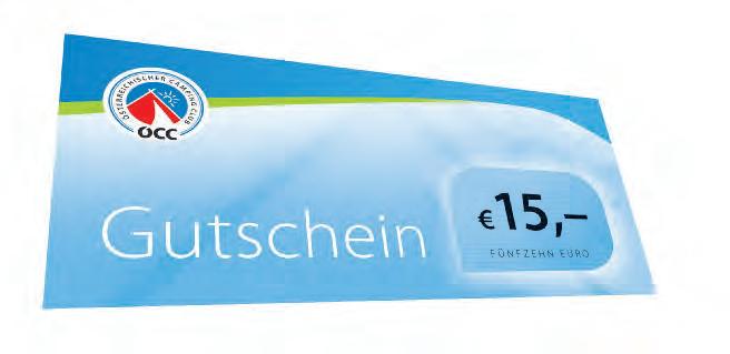 Gutschein 15 € Einlösbar für ÖCC Shop, ÖCC Mitgliedsbeitrag, Clubtreffen und CampTours.