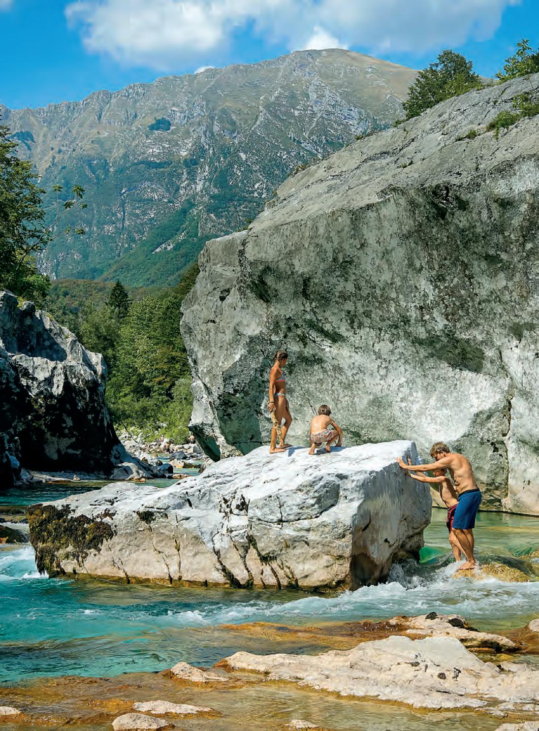 Eine sommerliche Zeltreise durch die Bergund Wasser-Landschaften Sloweniens.