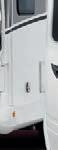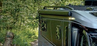 Serienmäßig ist das GfK-Dach mit reduzierter Hagelempfindlichkeit ausgestattet. Außerdem sind die Dach- und Seitenwände in Sandwichbauweise, und die Unterbodenbeschichtung macht das Fahrzeug für jede Witterung widerstandsfähig. Im Heck befindet sich die 80 x 80 Zentimeter große Garagentür, über die man Zugriff auf den umfassenden Stauraum unter dem Bett hat. Die getönten Fenster mit Doppelverglasung sind mit Insektenschutz und Verdunklung ausgestattet. Die drei Dachhauben bieten zusätzlich noch die Möglichkeit zur Belüftung. Eine Markise von Thule sorgt für Schatten.