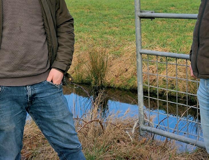 exemplaren. Gunstig voor de weidevogels, want het betekent dat in zijn jachtgebied van 1200 hectare bij Aldegea (Sm.) de vos onder controle is. Op de zwarte kraai, de marterhond en de steenmarter (in een pilot) mag ook gejaagd worden. Andere marterachtigen, de bruine kiekendief en buizerd zijn beschermd. De stroper die het meest wordt gezien is de kat. Bijma: ‘Je wilt natuurlijk niet dat katten rondstruinen tussen de weidevogels. Maar ja, het zijn huisdieren, dat ligt heel gevoelig. Daarom is de bewustwordingscampagne ‘Kuikens in het land, poes in de mand’ belangrijk.’ De twee merken dat boeren zich steeds meer inzetten voor de weidevogels. Er is veel belangstelling voor beheerpakketten: uitgesteld maaien, aanleg van plasdras en kruidenrijk grasland. Ze benadrukken dat al deze maatregelen geen effect hebben als de predatoren niet worden bestreden. ‘Zonder jacht worden er amper kuikens groot.’ Vanaf half april kruipen de jonge vogels uit het ei. ‘Als je de kuikens ziet … daar word je blij van’, glimlacht Biesma. ‘Ik help graag mee aan het succes van weidevogelbeheer. Wij als jagers zijn dan ook blij met de Noardlike Fryske Wâlden.’ Bijma: ‘En de Noardlike Fryske Wâlden is blij met de vrijwilligers.’