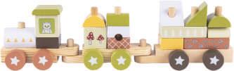 Con 2 vagones y 15 ladrillos. Hay bloques de construcción para enchufar en cada vagón.