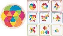 Incluye 1 caja de madera, 12 piezas de madera de distintas formas y 15 fichas de doble cara. 28 piezas.