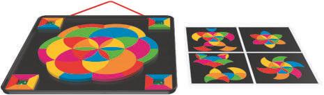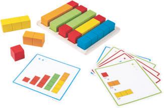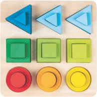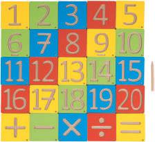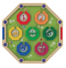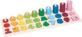 Base con 10 números de colores, 10 formas geométricas y 55 arandelas de distintas formas para clasificar. 76 piezas.