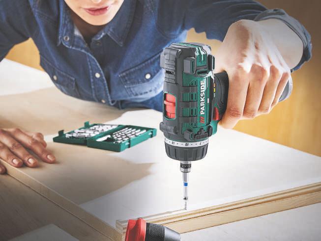 PARK S I DE® Herramienta s de trabajo • 5 mo delos 3.99 /ud /set set Brocas para bisagra 4 unidades. set Extractores de tornillos HSS 5 unidades. Eje flexible set Soporte angular con puntas con juego de puntas 6 unidades. set Set de sierras de corona 5 unidades. Bandeja 39.99 /ud t ambién online BATERÍAS 12 V. COMPATIBLE CONTODAS BATER AS PARK S I DE® Set de broca s • Comp atibles c on t a l adr ador a s de mano y ator nil l ador a s ha bitu a les • Con mango he xagona l • 3 mo delos 5.99 /set Brocas escalonadas Para metal. 2 unidades. 4 - 12 mm / 4 - 32 mm Brocas Forstner Para madera. 5 unidades. 15 - 20 - 25 - 30 - 35 mm Brocas fresadoras planas Para madera. 4 unidades. 20 - 40 x 152 mm No incluye ni cargador ni batería. PARK S I DE® Mar tillo per forador • Velo c id ad de giro en v ac ío: 0 - 9 0 0 r pm • Número de p ercu s iones: 0 - 4 8 0 0 ipm • In cluye: p or t a bro c a s de 1 0 mm c on re c ept ácu lo SDS , 2 bro c a s c on re c ept ácu lo SDS de 8 y 6 mm , 2 bro c a s p ar a mader a de 3 y 5 mm , 4 punt a s de tor nil lo de 5 0 mm y ma letí n 12 V Desde el lunes 2 1 de agosto F · NAR/M · 33/2023 16